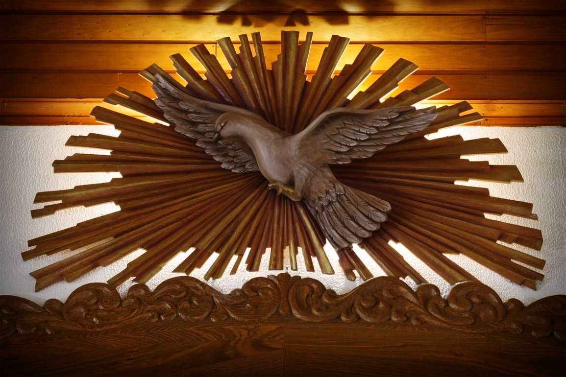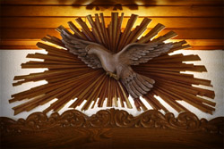 Título: Imagem do Espírito Santo Descrição: Escultura em madeira, obra de Suzy Thaler Perondi. Interior da Igreja Nossa Senhora do Perpétuo Socorro Local: Treze Tílias, SC Data do Registro: 12/03/2013