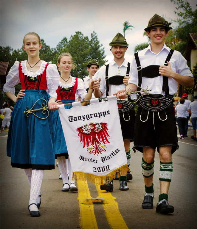 Título: Grupo de Dança Tirolesa Descrição: Tradicional Grupo de Danças Tiroler Plattler, fundado no ano 2000, durante sua apresentação no Desfile Histórico da Tirolerfest 2013 Local: Treze Tílias, SC Data do Registro: 13/10/2013