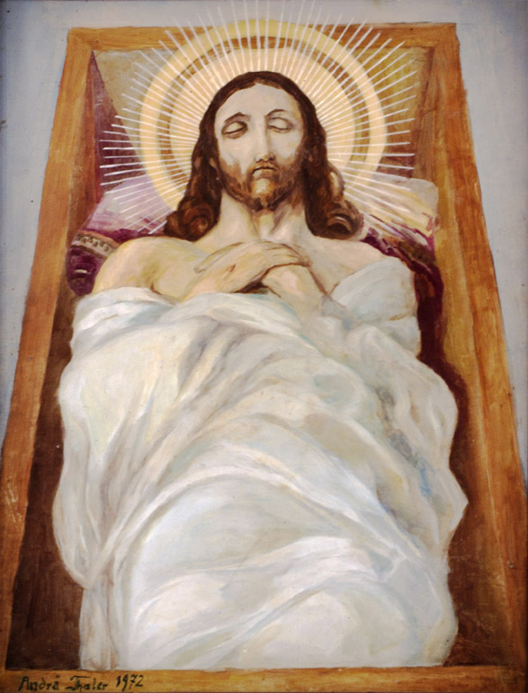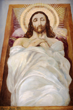 Título: 14ª Estação da Via Sacra: Jesus é Enterrado Descrição: Interior da Igreja Nossa Senhora do Perpétuo Socorro. A obra de pintura a óleo da Via Sacra é de autoria de Friedrich Flachsel e de Andrä Thaler Local: Treze Tílias, SC Data do Registro: 12/03/2013