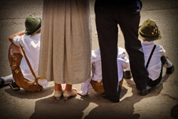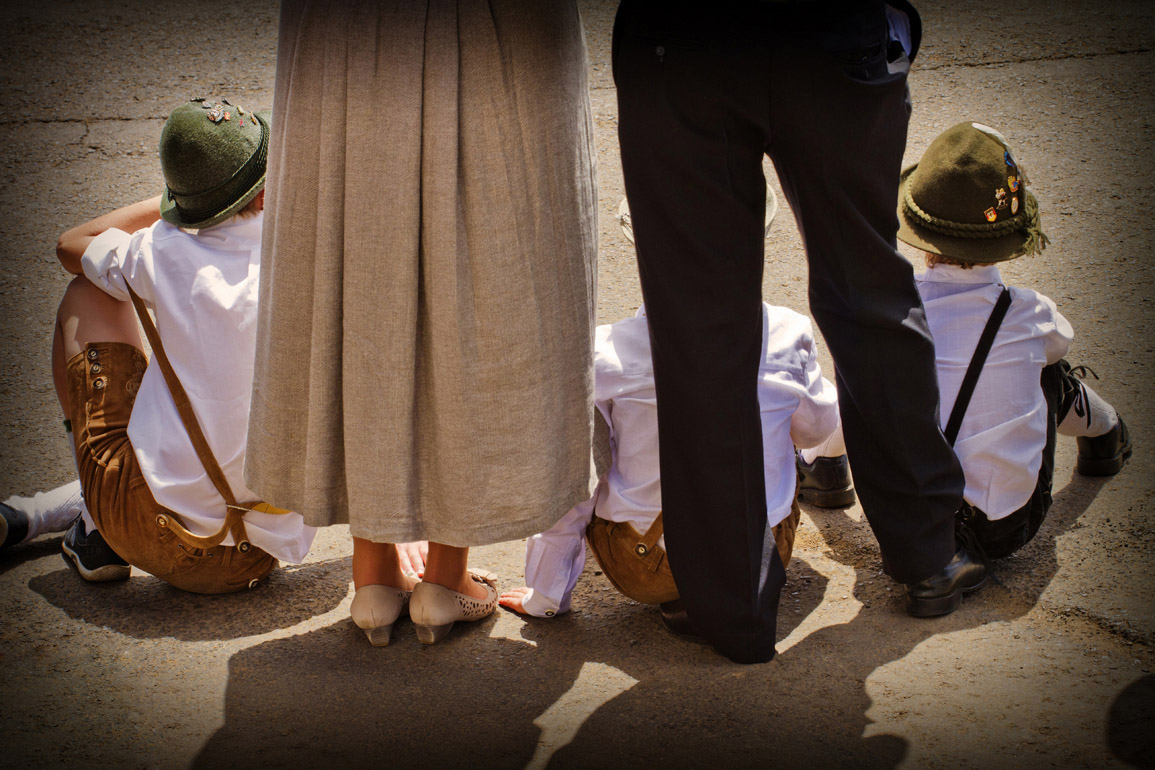 Título: Pais e filhos assistindo o Desfile Histórico Descrição: Durante o Desfile Histórico da Tirolerfest 2012 Local: Treze Tílias, SC Data do Registro: 14/10/2012