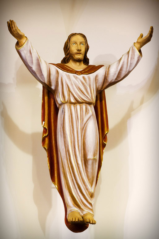 Título: Imagem de Cristo Ressuscitado Descrição: Escultura em madeira, obra de Suzy Thaler Perondi. Interior da Igreja de Nossa Senhora do Perpétuo Socorro Local: Treze Tílias, SC Data do Registro: 12/03/2013