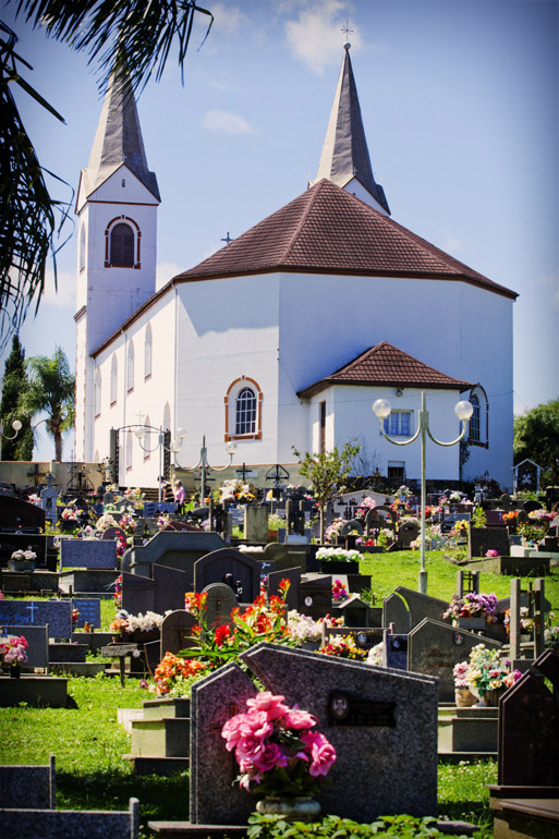 Título: Igreja Nossa Senhora do Perpétuo Socorro Descrição: Vista posterior da Igreja Nossa Senhora do Perpétuo Socorro, a partir do Cemitério Municipal Local: Treze Tílias, SC Data do Registro: 13/10/2012