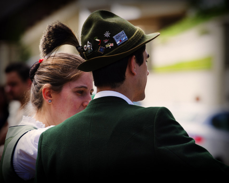 Título: Casal assistindo o Desfile Histórico Descrição: Durante o Desfile Histórico da Tirolerfest 2012 Local: Treze Tílias, SC Data do Registro: 14/10/2012