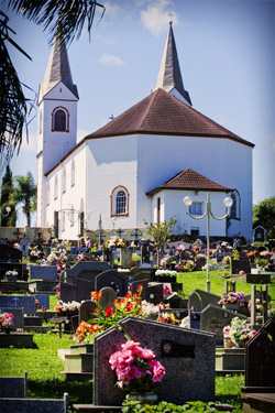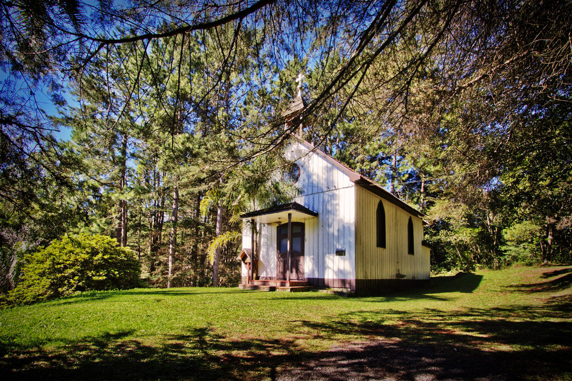 Título: Capela de Babenberg Descrição: Construída em 1934 e restaurada em abril de 1998 Local: Treze Tílias, SC Data do Registro: 14/10/2012