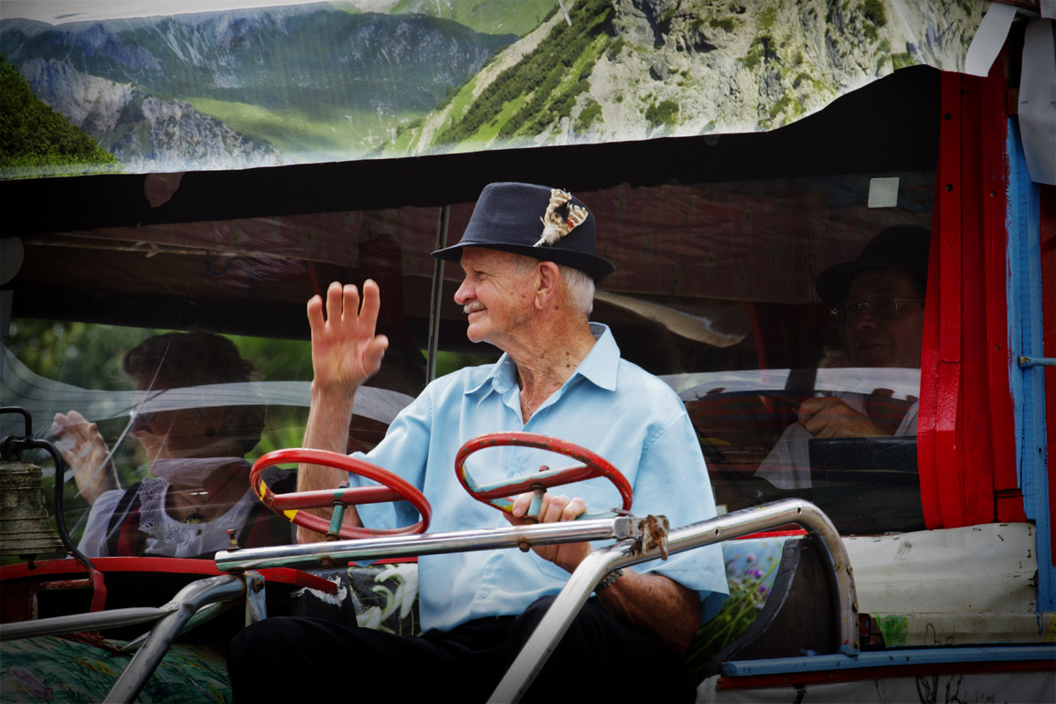 Título: Imigrante tirolês durante do Desfile Histórico da Tirolerfest 2013 Descrição: Na imagem, o Senhor Josef Geiger jun. proveniente de Welschnofen no Sul do Tirol. Chegou a Treze Tílias com seus pais em 1937, com dois anos e meio de idade. A família Geiger fez parte do 9º transporte de imigrantes, viajando no navio Principessa Giovanna, que trouxe 87 passageiros a bordo Local: Treze Tílias, SC Data do Registro: 13/10/2013