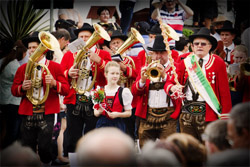 Título: Banda dos Tiroleses durante apresentação do Desfile Histórico da Tirolerfest 2013 Descrição: À frente o maestro Bernardo Moser. Esta Banda foi fundada em 1933 dentro do navio Principessa Maria que trouxe o primeiro grupo de imigrantes austríacos Local: Treze Tílias, SC Data do Registro: 13/10/2013