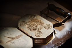 Título: Aparelho para produzir hóstias Descrição: Acervo do Museu Municipal Andreas Thaler Local: Treze Tílias, SC Data do Registro: 12/10/2012