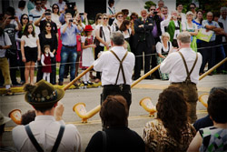 Título: Grupo Org. Brixlegger Alphornbläser - Áustria Descrição: Apresentação na Abertura do Desfile Histórico da Tirolerfest 2013 Local: Treze Tílias, SC Data do Registro: 13/10/2013