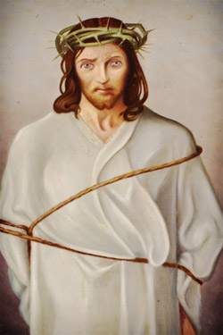 Título: 1ª Estação da Via Sacra: Jesus é Condenado à Morte Descrição: Interior da Igreja Nossa Senhora do Perpétuo Socorro. A obra de pintura a óleo da Via Sacra é de autoria de Friedrich Flachsel e de Andrä Thaler Local: Treze Tílias, SC Data do Registro: 12/03/2013