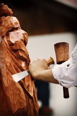 Título: O escultor e sua obra: libertando a imagem Descrição: Escultor Werner Thaler durante o Desfile Histórico da Tirolerfest 2013 Local: Treze Tílias, SC Data do Registro: 13/10/2013