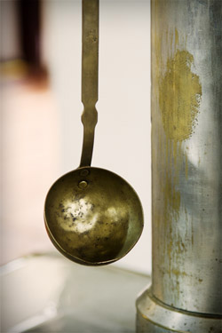 Título: Utensílio de Cozinha: Concha de Metal Descrição: Acervo do Museu Municipal Andreas Thaler Local: Treze Tílias, SC Data do Registro: 12/10/2012