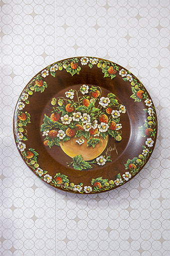 Título: Prato em madeira com pintura decorativa em Bauernmalerei Propriedade de Maria Tereza Pattis Scharf