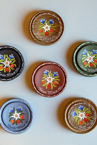 Título: Pratos de madeira decorados com pintura em Bauernmalerei Obra de Cláudia Unterberger Gratt